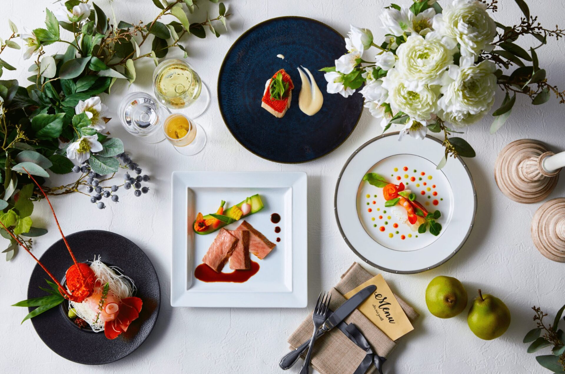 ビアンカーラ・ヒルサイド・テラスでは、前菜からデザートにいたるまで、ゲストへの想いに合わせて一品ずつセレクトできるプリフィックスメニューを採用しています。希望に合わせて組み合わせることで、最大で200通りものメニューパターンを作ることが可能です。ビアンカーラ・ヒルサイド・テラスならではのオリジナルコースを創り上げることで、ゲストへの最高のおもてなしをカタチにすることができます。一品ずつゆっくりとお召し上がりいただきながら、大切なゲストとのひとときを過ごせます。