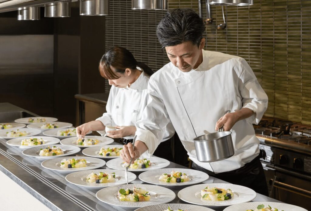 ザ・グロー オリエンタル名古屋の披露宴会場には、ゲストの目の前で調理を行うオープンキッチンが併設されています。シェフが腕を振るうライブ感を間近で愉しみながら、出来たての温かい料理を最高のタイミングで提供できるのが大きな魅力です。料理にこだわりを持ち、ゲスト一人ひとりを食の観点から満足させたいカップルにもおすすめです。